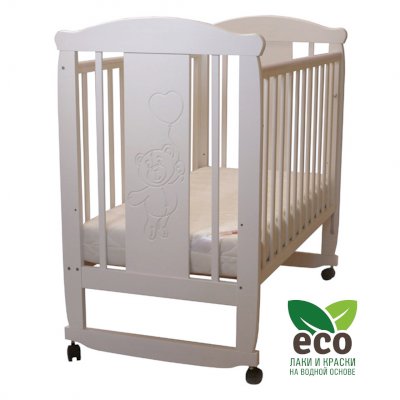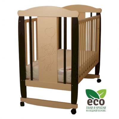 Кроватка "Соня 02" имеет механизм качания колесо-качалка. Колеса оснащены стопорами.