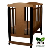 Кроватка декорирована фрезерным рисунком "Мишка". Уникальные фрезерные рисунки размером от 50 см на обеих спинках.