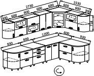 Кухонный гарнитур "Ника-1" фасад "Мыло 128" 2,7мх1,5м глянец