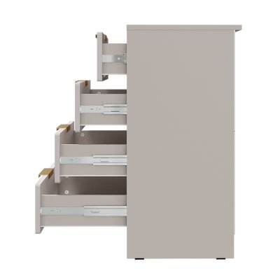 - Стильные ручки в цвете «пыльно-матовое золото».