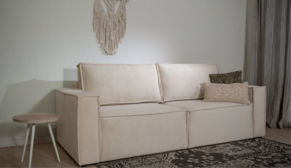 Брутальный диван с минималистическим дизайном и комфортной посадкой украсит современный интерьер, отлично подойдет для зонирования комнаты. Прямые линии силуэта подчеркиваются двойным декоративным кантом. Посадочное место образовано из двух частей, которые раскладываются независимо друг от друга и при необходимости прямую конфигурацию дивана можно менять на угловую. Инновационная система раскладки состоит из трех роликов на металлических направляющих, легко превращает диван в спальное место, исключает перекосы и деформацию короба. Металл в направляющих повышает их надежность и сопротивляемость нагрузкам. Независимый пружинный блок в основании дивана гарантирует комфортный отдых.