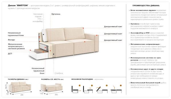 Диван Милтон (Империал) продается в интернет-магазине mebelin-korolev.ru по цене 60 770 руб. Есть доставка по Королёву и Московской области. Возможность подъема на этаж и сборки уточняйте у менеджера по телефону 8(800)505-27-11.